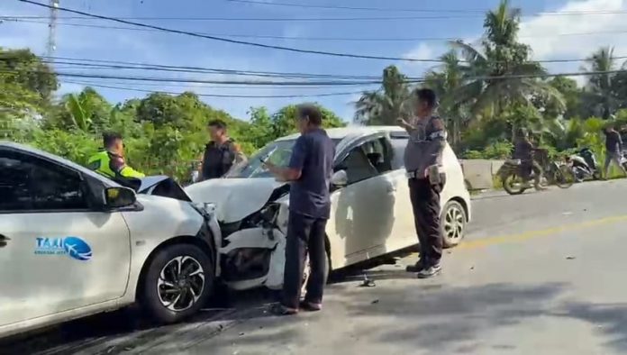 Dalam kondisi tersebut, tabrakan keras tidak terhindarkan. Mobil Ayla yang masuk ke jalur berlawanan langsung menghantam mobil taksi bandara dari arah depan.