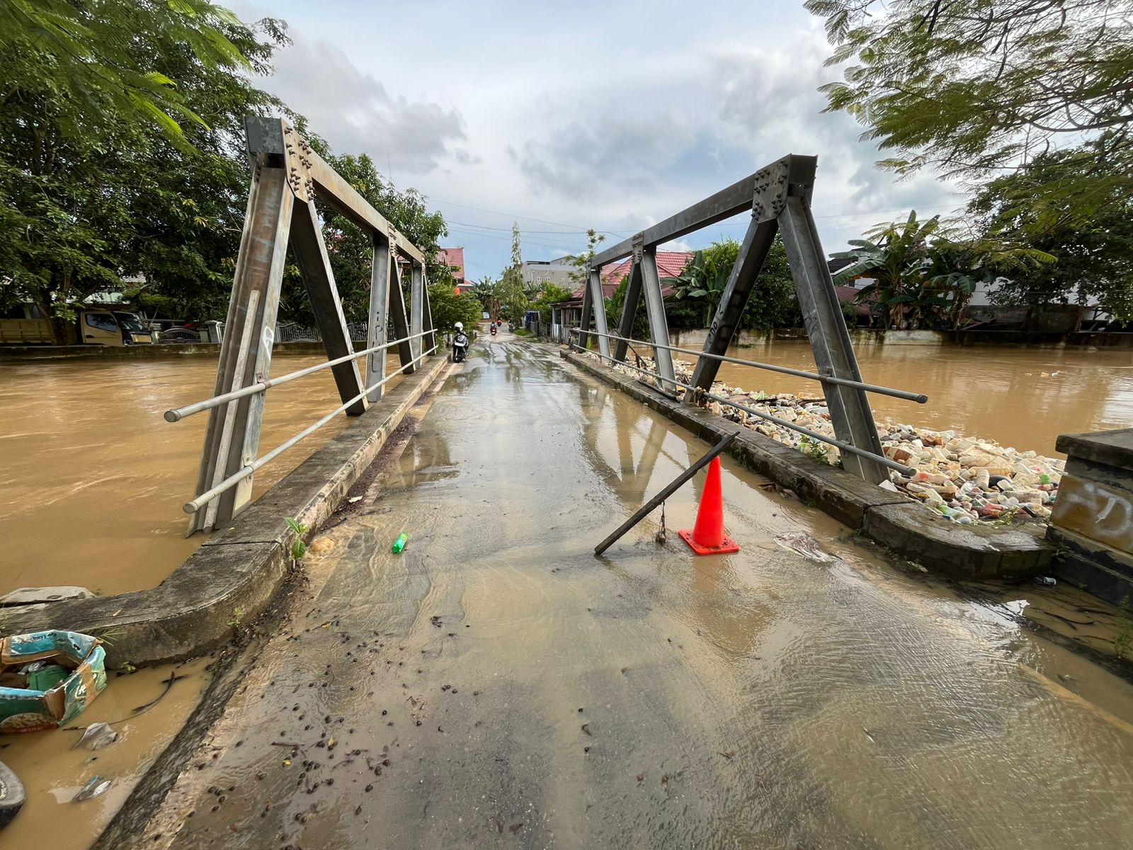 Selain itu, air sungai yang meluap saat ini masih terbilang masih awalan. Sebab jika air sudah mulai tinggi, maka jembatan hingga batas trotoar pastinya bakal ikut terendam banjir.