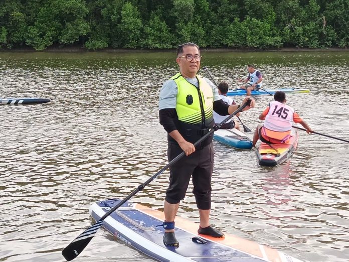 Tak sekadar memantau, Akmal yang juga dikenal sebagai penggemar olahraga paddling turut turun langsung menjajal lintasan Sungai Manggar. Ia mengikuti lomba SUP Long Distance dan menuntaskan rute tujuh kilometer dengan catatan waktu yang kompetitif, sekaligus memastikan langsung keamanan dan kelayakan lintasan.