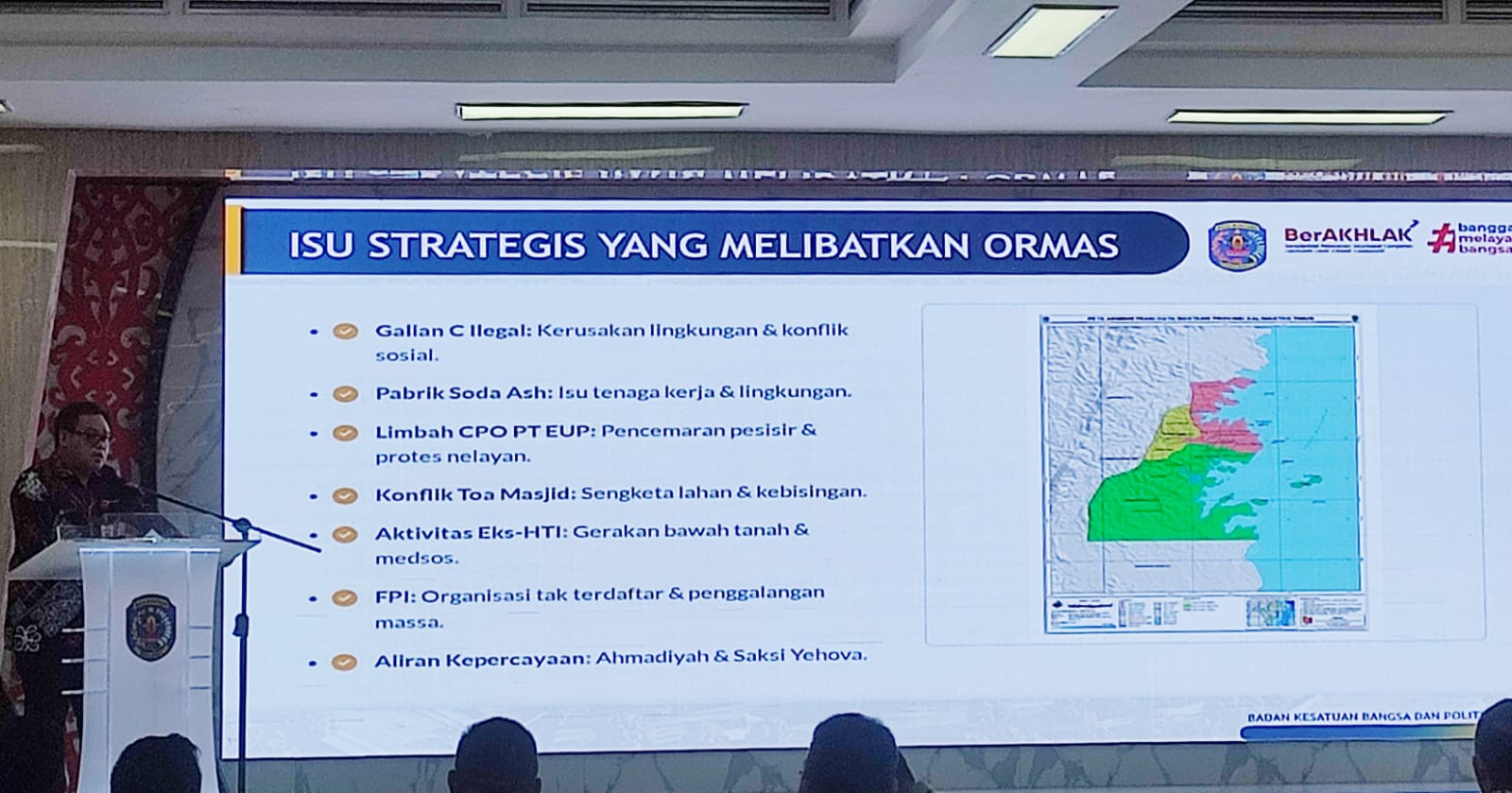 Selain itu, Kesbangpol juga menyoroti konflik pendirian rumah ibadah yang kerap dipicu sengketa lahan dan persoalan kebisingan, serta aktivitas kelompok eks-HTI yang diduga masih melakukan gerakan bawah tanah maupun melalui media sosial. Isu lain yang turut menjadi perhatian adalah keberadaan organisasi yang tidak terdaftar namun aktif melakukan penggalangan massa.