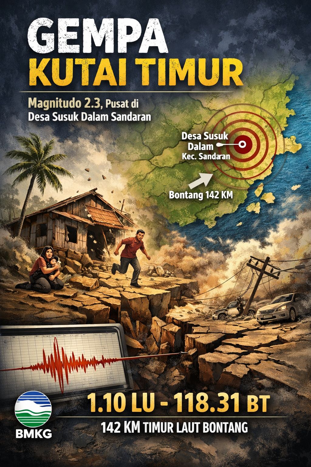 “Jika mengacu pada titik koordinat tersebut, lokasi gempa sebenarnya berada di wilayah Desa Susuk Dalam, Kecamatan Sandaran, Kabupaten Kutai Timur. Jadi bukan di Bontang,” ucapnya saat dikonfirmasi.