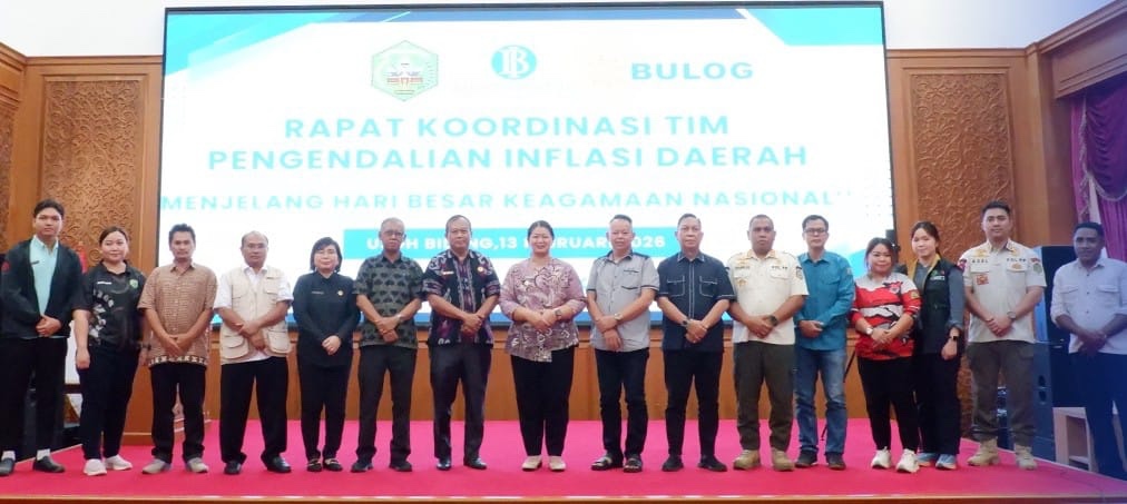 UJOH BILANG – Bupati Mahakam Ulu, Angela Idang Belawan, secara resmi membuka Rapat Koordinasi (Rakor) Tim Pengendalian Inflasi Daerah (TPID) menjelang Hari Besar Keagamaan Nasional (HBKN) di Ballroom Lantai III Kantor Bupati Mahakam Ulu, Kamis (13/2/2026). Rapat ini digelar sebagai langkah antisipatif menjaga stabilitas harga dan ketersediaan bahan pokok menjelang Bulan Suci Ramadhan dan Idul Fitri 1447 Hijriah.