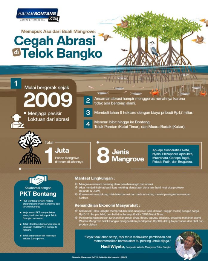 Telok Bangko kini bukan hanya hutan mangrove—ia adalah bukti bahwa satu tekad tulus dapat menumbuhkan dua juta pohon dan melindungi masa depan pesisir Bontang. (rafiii/tim redaksi)