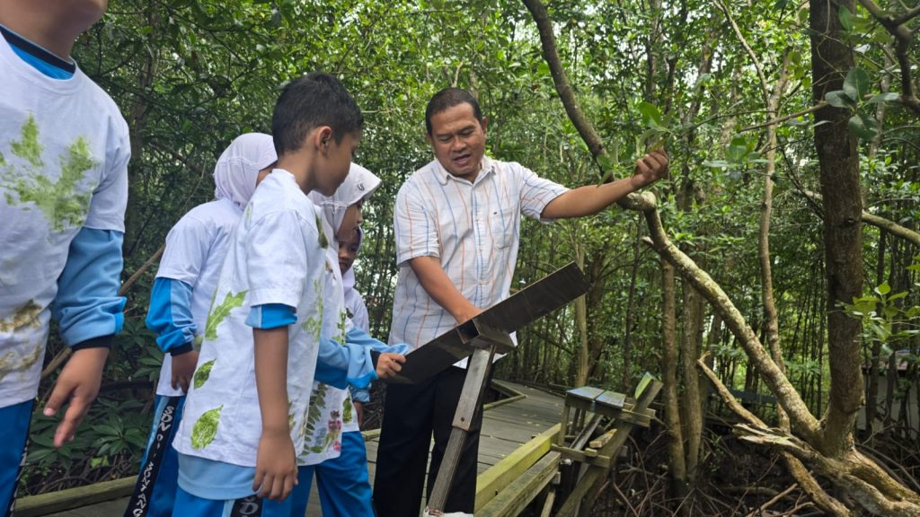 Konservasi ini berkembang menjadi wisata edukasi yang selalu dipenuhi anak-anak sekolah. Mereka belajar eco-print, memahami pohon mangrove, hingga dikenalkan pada pentingnya menjaga lingkungan sejak dini. Suara tawa anak-anak dan langkah kecil mereka di jembatan kayu menjadi pemandangan harian di Telok Bangko.