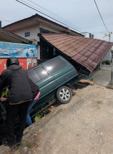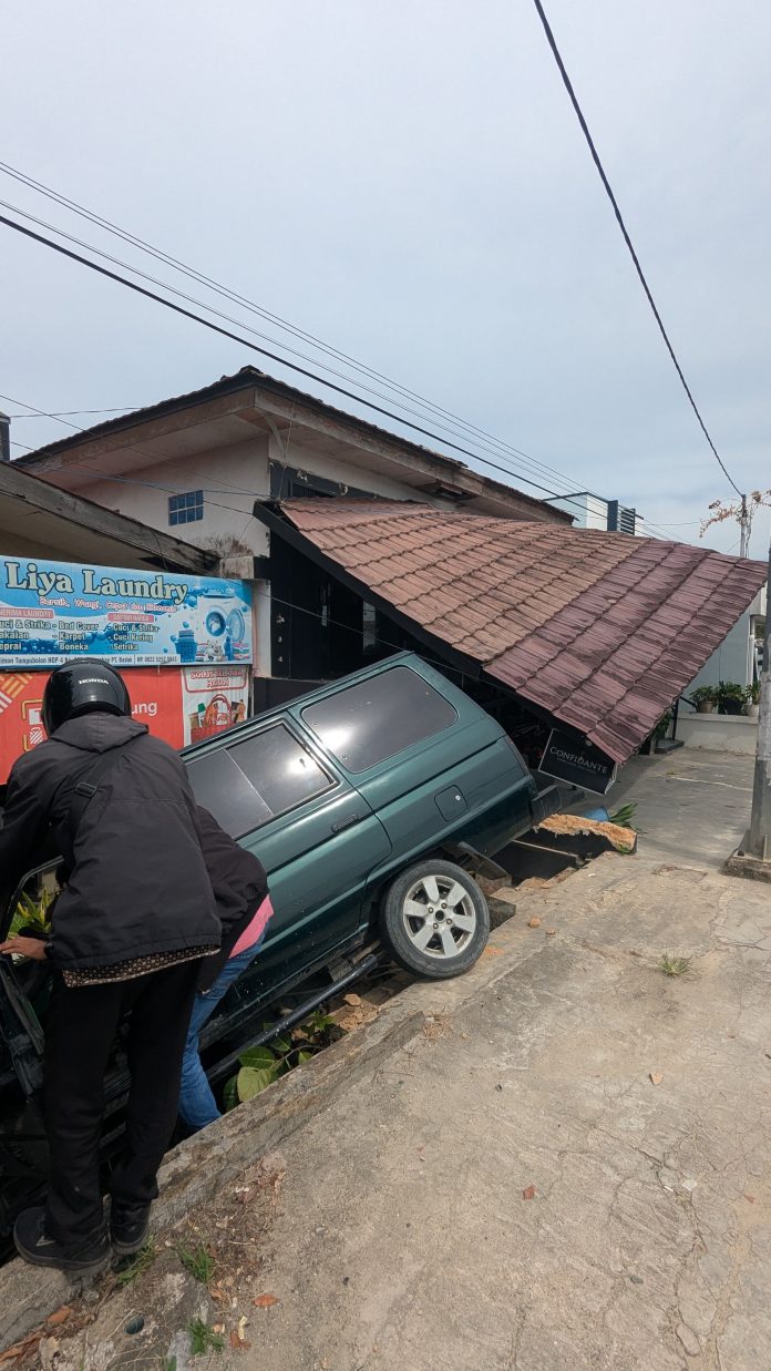 BONTANG – Terjadi kecelakaan tunggal di Jalan Simon Tampubolon, kawasan HOP 4, Kamis (9/4/2026), sekitar pukul 14.10 WITA. Mobil jenis kijang melaju dari arah jembatan, hendak menuju ke arah Yabis, tiba-tiba saja keluar jalur dan menabrak sebuah barbershop di pinggir jalan.