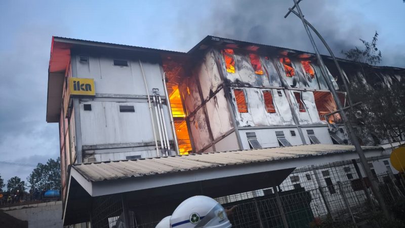 NUSANTARA – Kebakaran melanda Hunian Pekerja Konstruksi (HPK) Gedung Nusa Indah di kawasan HPK 1B, Desa Bumi Harapan, Kecamatan Sepaku, Selasa (1/10/2025) sore. Meski api sempat berkobar hebat sekitar pukul 17.30 Wita, beruntung tidak ada korban jiwa dalam peristiwa tersebut.