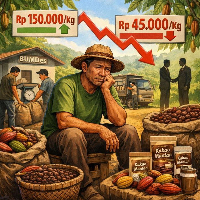 Fluktuasi harga menjadi persoalan paling krusial. Didi menyebut, harga kakao sempat mencapai Rp150 ribu per kilogram. Namun kini turun drastis menjadi sekitar Rp45 ribu per kilogram.