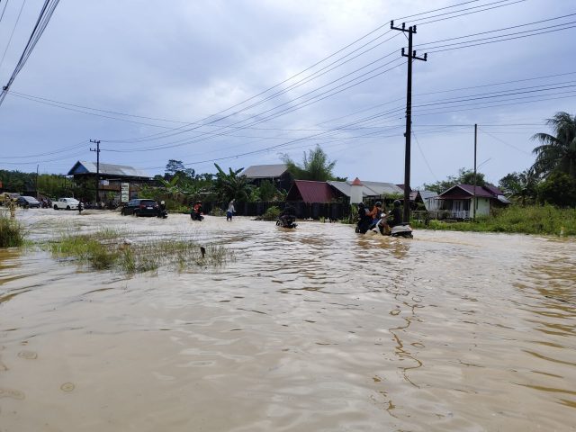 Tak ayal banyak kendaraan yang terhambat saat melintasi jalan tersebut, sebab banjir yang terpantau cukup tinggi membuat kendaraan seperti sepeda motor susah untuk melintas dan menerobos banjir.