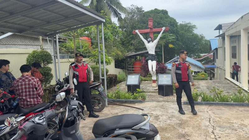 Personel tiba lebih awal untuk melakukan pengecekan keamanan, memantau kondisi gereja, hingga mengatur arus kendaraan di area parkir agar tetap tertib. Pengamanan juga diperkuat dengan penempatan petugas di sejumlah titik strategis untuk mengawasi mobilitas jemaat dan mencegah potensi gangguan kamtibmas.