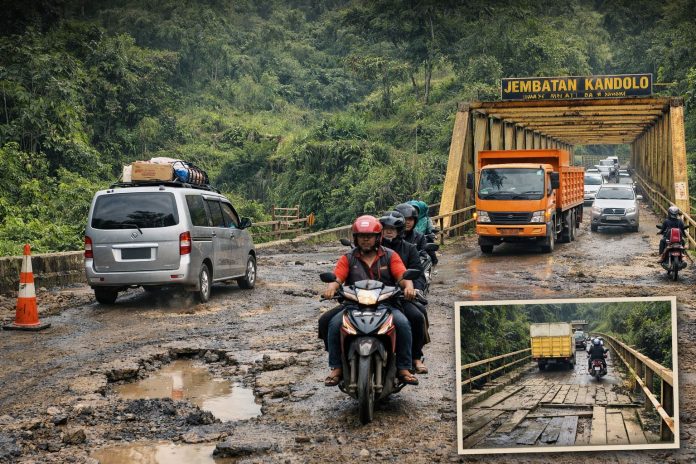 Tak hanya itu, jembatan di kawasan Kandolo, Kecamatan Teluk Pandan, juga masuk dalam daftar titik rawan. Struktur jembatan tersebut dinilai cukup riskan, terutama bagi kendaraan bermuatan berat atau saat cuaca ekstrem.