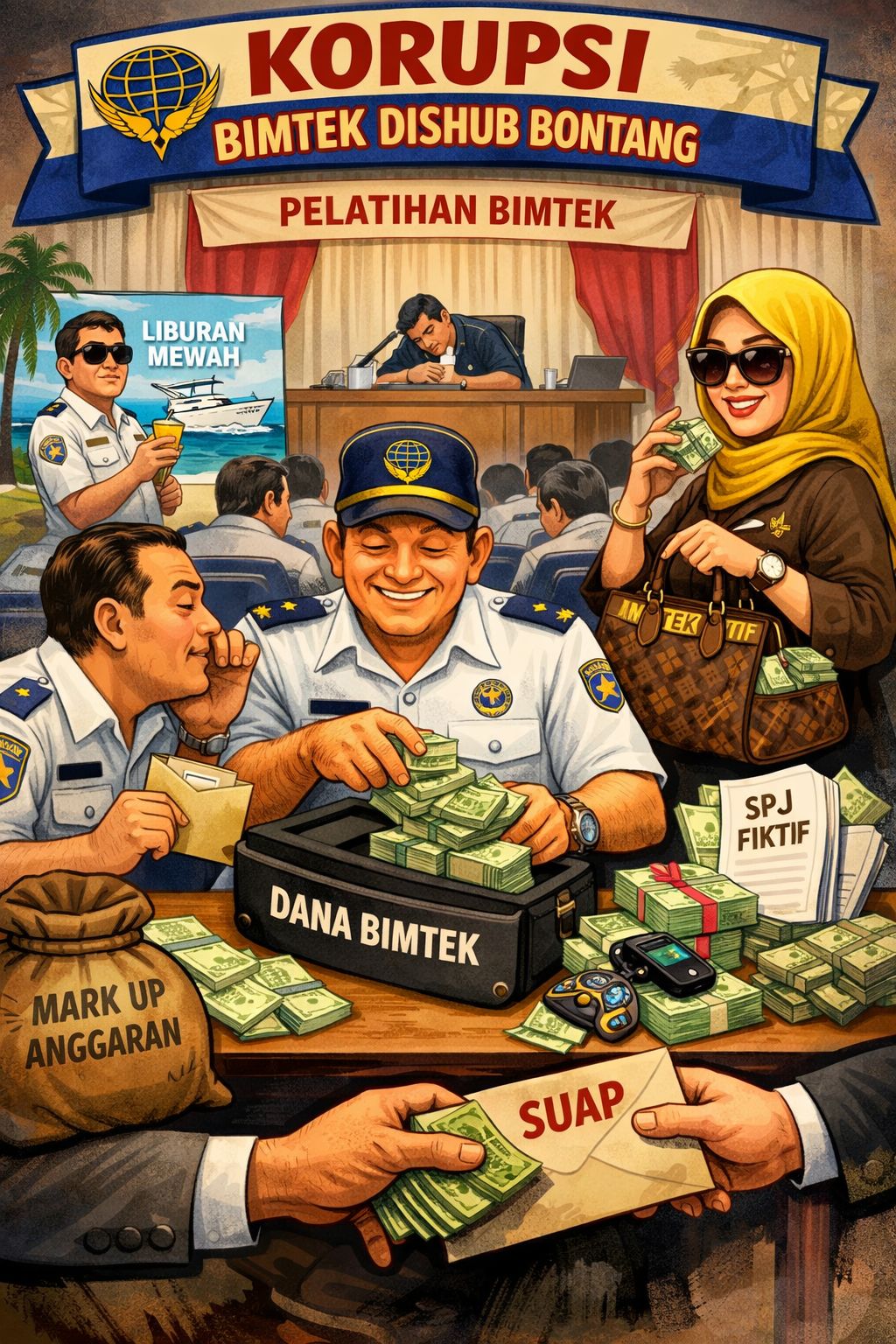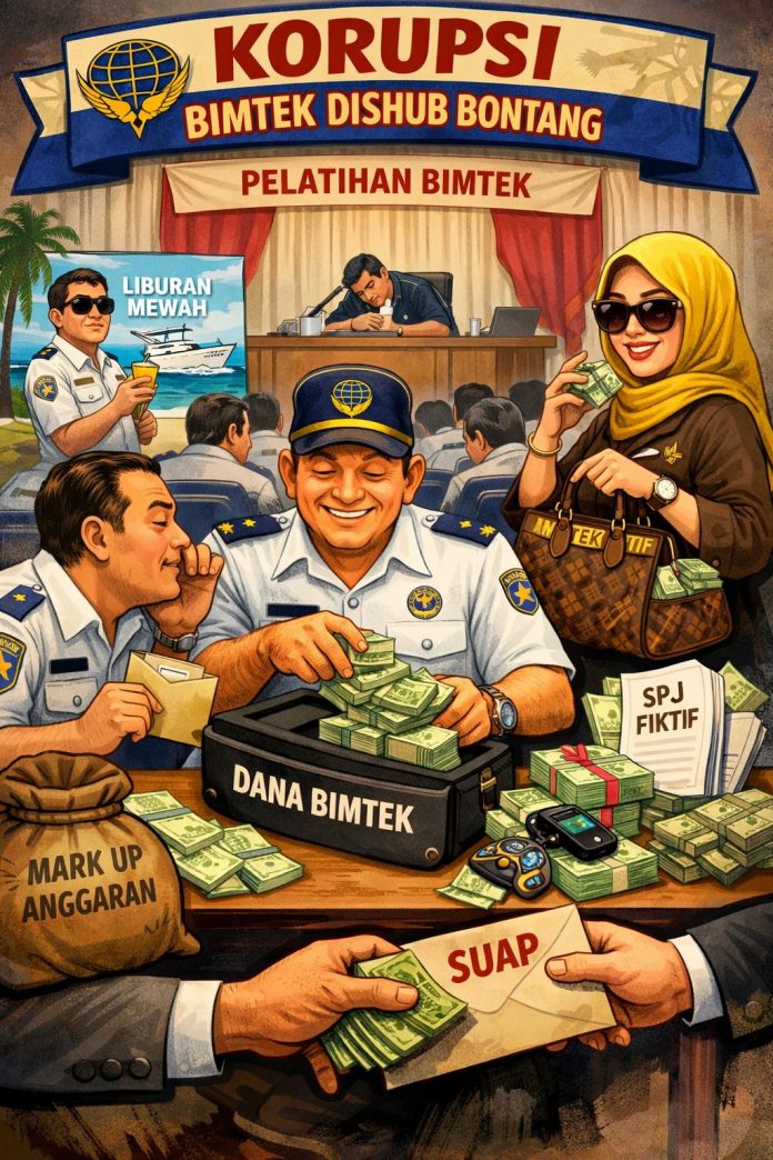 “Di SPJ juga dicantumkan nama-nama pegawai yang faktanya tidak mengikuti kegiatan bimtek, tetapi tetap digunakan sebagai dasar pencairan anggaran,” jelasnya.