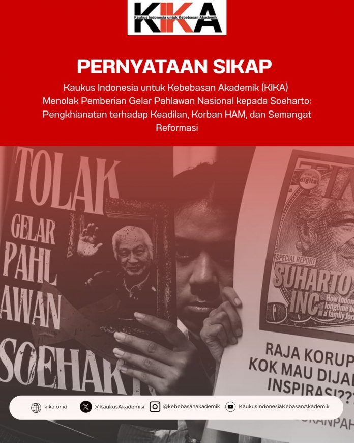 KIKA menilai pemberian gelar pahlawan kepada Soeharto hanya akan menjadi “tanda kematian simbolik reformasi” dan mencerminkan kemunduran demokrasi Indonesia saat ini.