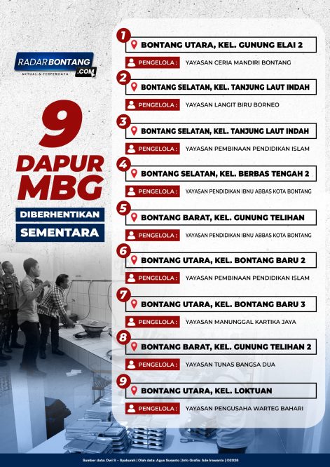 Evaluasi lapangan yang dilakukan Badan Gizi Nasional (BGN) melalui SPPG Regional Bontang menjadi titik balik penting. Dari hasil inspeksi, sembilan dapur MBG harus dihentikan sementara operasionalnya.