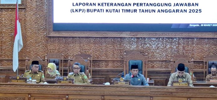 SANGATTA – Pemerintah Kabupaten Kutai Timur (Kutim) memaparkan capaian kinerja sepanjang 2025 dalam Rapat Paripurna DPRD, Senin (30/3/2026). Bupati Kutai Timur, Ardiansyah Sulaiman, menyampaikan langsung nota pengantar Laporan Keterangan Pertanggungjawaban (LKPJ) Tahun Anggaran 2025.