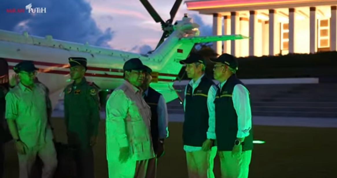 Presiden mendarat sekitar pukul 18.47 Wita menggunakan helikopter berwarna putih yang langsung turun di lapangan depan Istana Negara IKN. Helikopter yang ditumpangi Prabowo menjadi unit ketiga yang mendarat, setelah dua helikopter TNI pengawal lebih dulu tiba untuk memastikan pengamanan lokasi.