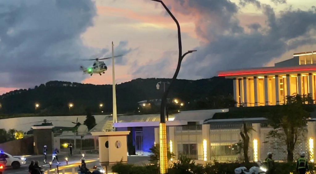 Pertemuan singkat terlihat berlangsung di area Istana Negara sebelum Presiden dan rombongan melanjutkan perjalanan darat menuju Swissotel Nusantara untuk bermalam.