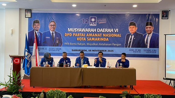 SAMARINDA – Musyawarah Daerah (Musda) ke-VI Partai Amanat Nasional (PAN) Kota Samarinda digelar di Hotel Amaris, Sabtu (8/11/2025). Dari forum tersebut, Suparno resmi terpilih sebagai formatur Ketua DPD PAN Kota Samarinda untuk periode 2025–2030.