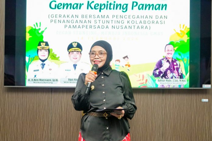 BONTANG – Wali Kota Neni Moerniaeni menegaskan bahwa stunting masih menjadi tantangan serius dalam pembangunan sumber daya manusia. Hal itu disampaikan saat meresmikan peluncuran Program Gemar Kepiting PAMA yang digelar di Graha Saba, Puskesmas Bontang Lestari, Sabtu (14/2/2026).