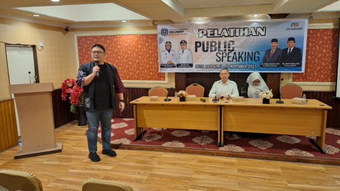 BONTANG – Pelatihan public speaking bagi UMKM Kota Bontang yang digelar, Senin (17/11/2025) di Hotel Raodah didukung penuh Dinas Koperasi Usaha Mikro Perindustrian dan Perdagangan (DKUMPP) Bontang. Lantaran kegiatan ini menjadi salahsatu upaya DKUMPP membuat UMKM Bontang naik kelas.