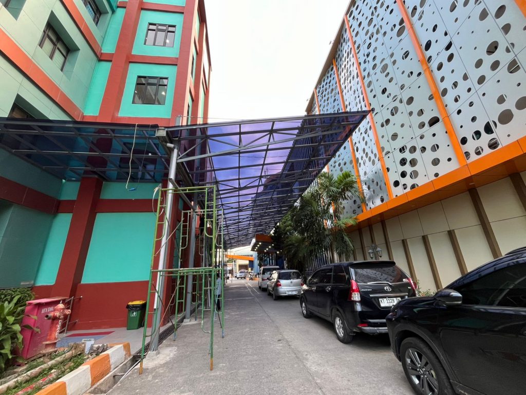 Bukan hanya untuk mempercantik wajah gedung saja, akan tetapi dalam pemasangan ACP juga penambahan atap agar para pengunjung tidak kehujanan atau kepanasan saat menyebrang dari gedung satu, ke gedung yang lain.