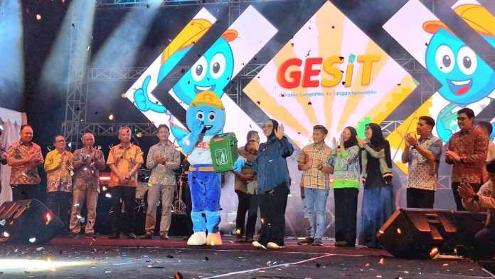 Launching dimulai dengan seremoni Wali Kota Neni membuka selembar kain yang menutupi maskot GESIT.
