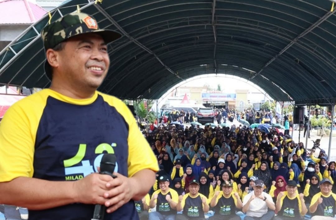 Milad ke-48 BKPRMI mengusung tema “Gerbang Emas untuk Indonesia Emas” dan diisi beragam kegiatan, mulai jalan sehat, pemeriksaan kesehatan gratis, donor darah, hingga bazar sembako murah. Meski sempat diguyur gerimis, ratusan guru ngaji dan keluarga tetap antusias mengikuti jalan sehat.