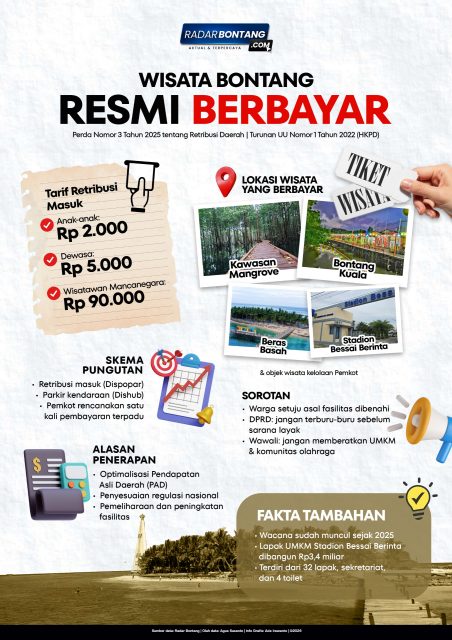 Kepala Dispopar Bontang, Eko Mashudi, menjelaskan bahwa penarikan retribusi dilakukan sesuai Peraturan Daerah (Perda) Nomor 3 Tahun 2025 tentang Retribusi Daerah, yang merupakan tindak lanjut dari Undang-Undang Nomor 1 Tahun 2022 tentang Hubungan Keuangan antara Pemerintah Pusat dan Daerah.