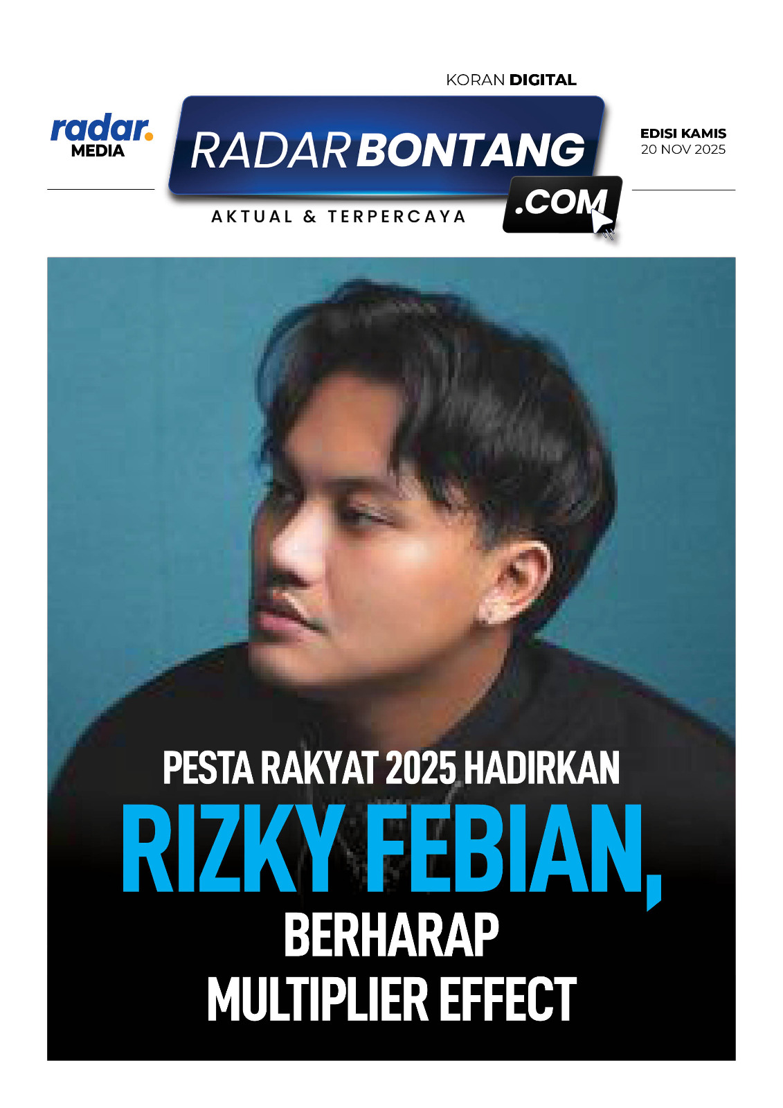 Pesta Rakyat 2025 bakal semakin meriah dengan kehadiran Rizky Febian sebagai bintang utama. Kehadirannya diharapkan memberi multiplier effect bagi UMKM, pariwisata lokal, hingga geliat ekonomi masyarakat.