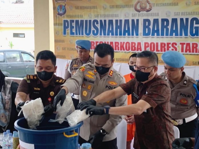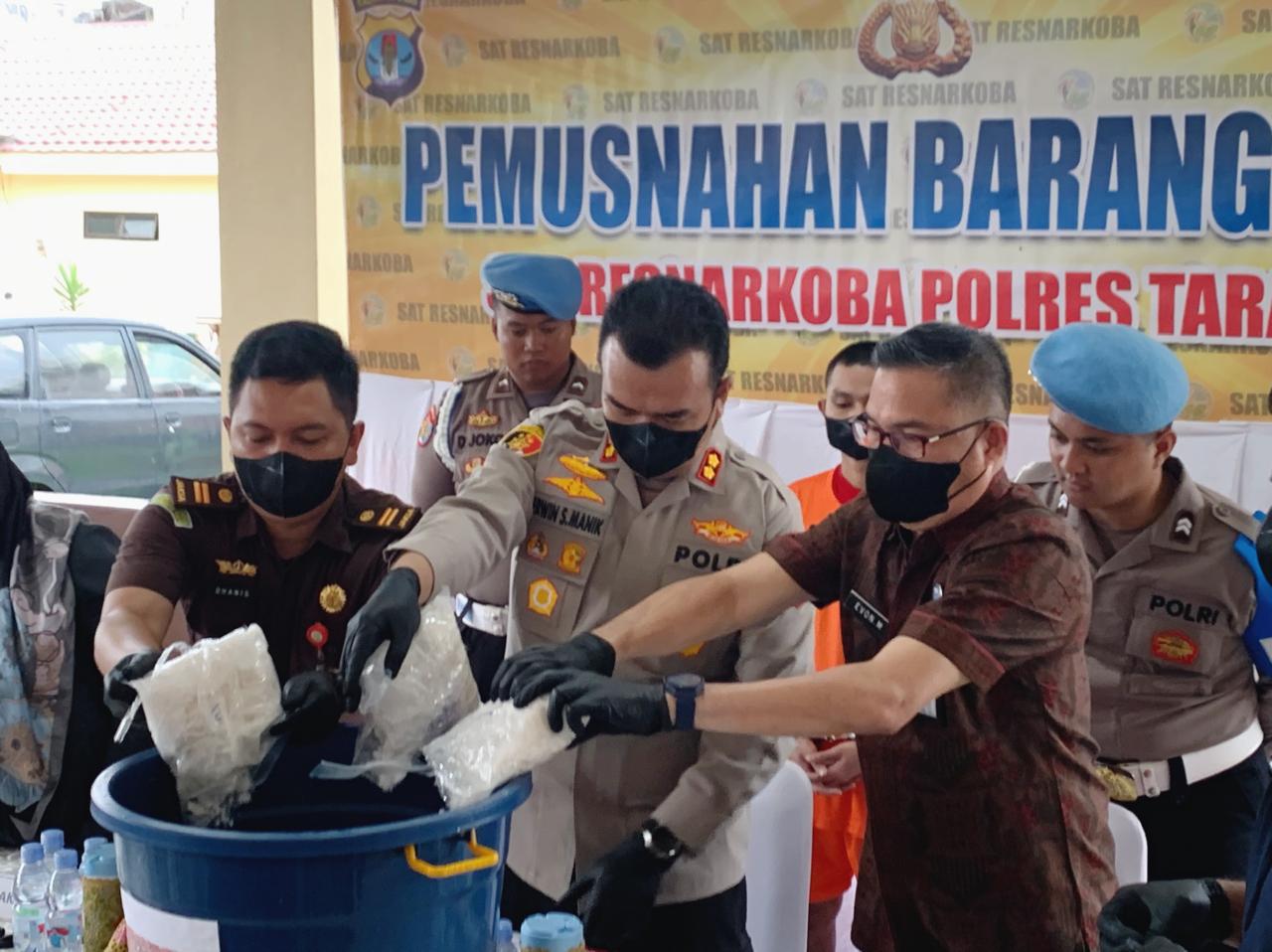 TARAKAN – Polres Tarakan memusnahkan lebih dari 3 kilogram sabu hasil pengungkapan kasus narkotika jaringan lintas daerah. Pemusnahan dilakukan di Mapolres Tarakan, Selasa (16/12/2025), dipimpin langsung Kapolres Tarakan AKBP Erwin S. Manik.