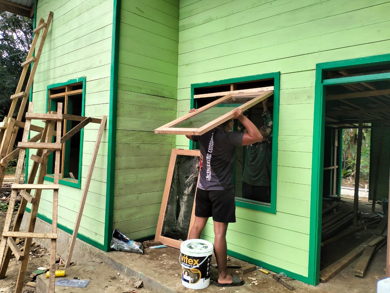 “Kami terus kebut pengerjaan agar rumah ini segera selesai dan bisa ditempati oleh warga. Saat ini sudah memasuki tahap pemasangan jendela,” ujarnya.