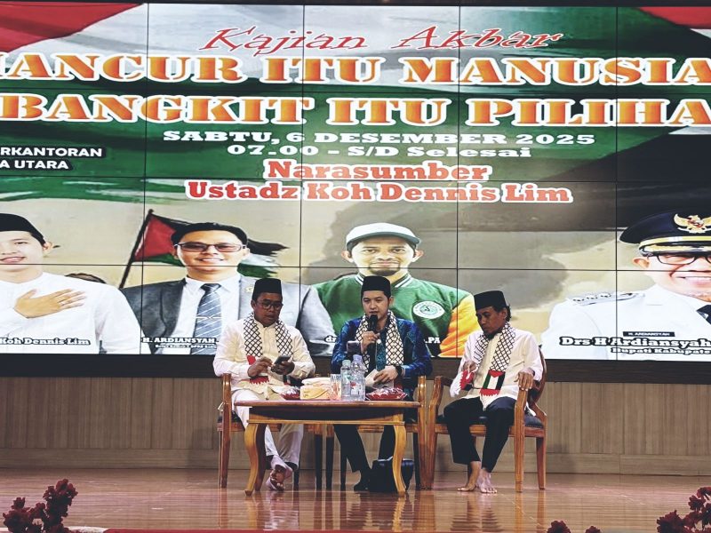 SANGATTA — Ribuan jamaah memenuhi Gedung Serbaguna Guna (GSG) Kawasan Perkantoran Bukit Pelangi, saat Tabligh Akbar yang digelar pada Sabtu (6/12/2025). Acara keagamaan ini menghadirkan penceramah nasional Ustadz Koh Dennis Lim, yang tampil dengan pesan lugas mengenai kejujuran dan pentingnya menjaga hak-hak kaum dhuafa.