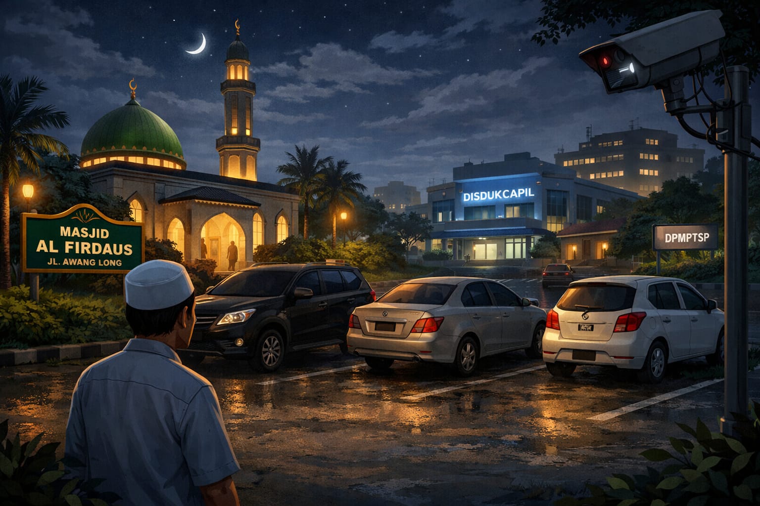 BONTANG – Salah seorang jamaah Masjid Al Firdaus yang berada di kawasan Disdukcapil Kota Bontang, melaporkan adanya aktivitas parkir kendaraan yang dinilai tidak biasa pada malam hari.