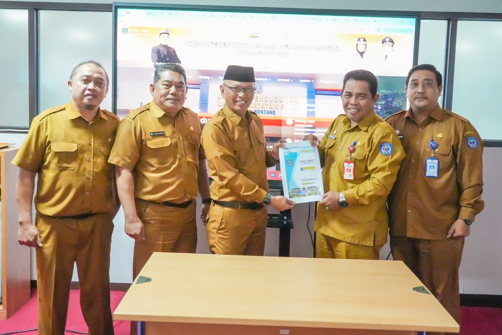Kepala Disdukcapil Budiman turut mengapresiasi dukungan Diskominfo melalui penyerahan website baru ini.