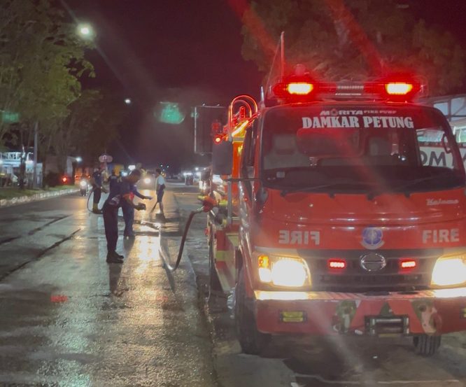 Laporan pertama diterima dari warga RT 19 yang khawatir kondisi jalan menjadi licin dan membahayakan pengguna jalan. Menindaklanjuti hal tersebut, pihak kelurahan segera berkoordinasi dengan Damkar Posko Petung untuk melakukan penanganan.