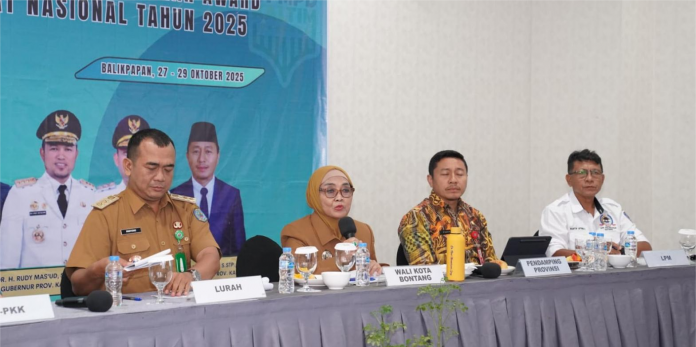 BONTANG — Wali Kota Neni Moerniaeni turun langsung mendampingi tim Satimpo dalam penilaian Lomba Kelurahan Tingkat Nasional 2025, yang digelar secara daring dari Hotel Platinum Balikpapan, Selasa (28/10).