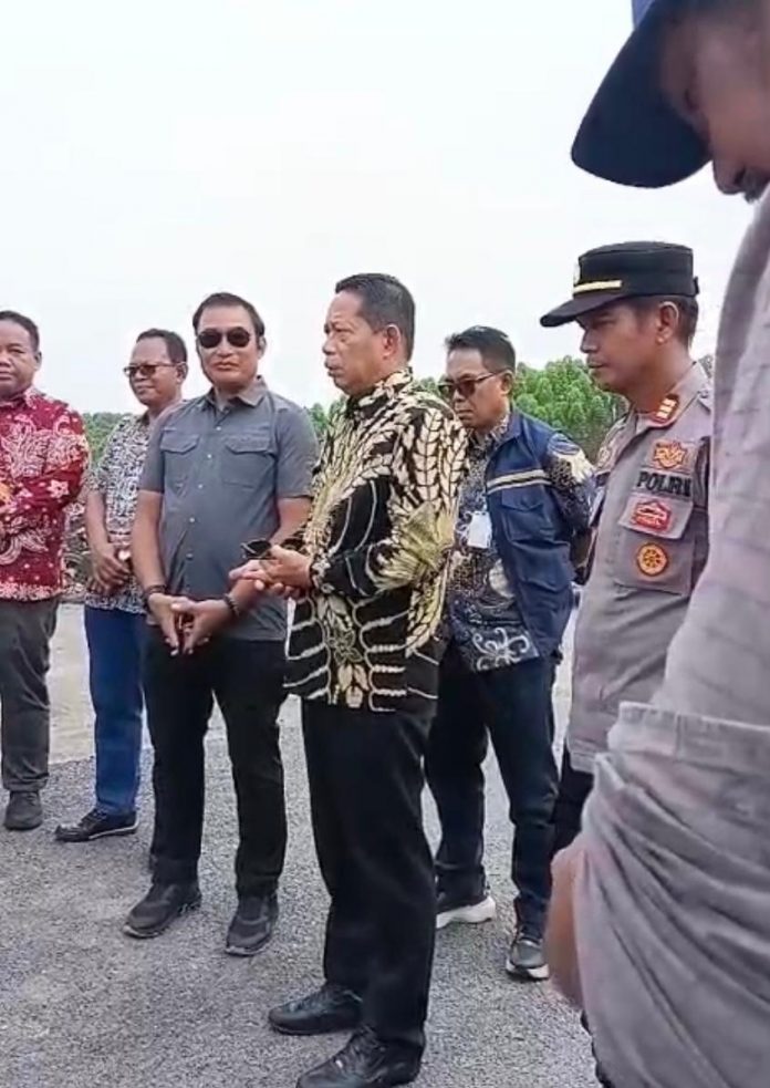NUSANTARA — Deputi Sosial, Budaya, dan Pemberdayaan Masyarakat (SBPM) Otorita Ibu Kota Nusantara (OIKN), Alimuddin, turun langsung ke lokasi pemortalan akses Jalan Bebas Hambatan (JBH) Segmen 6A di wilayah Pemaluan untuk menjelaskan hasil rapat antara pemerintah dan perwakilan warga yang sebelumnya digelar di Polda Kaltim.