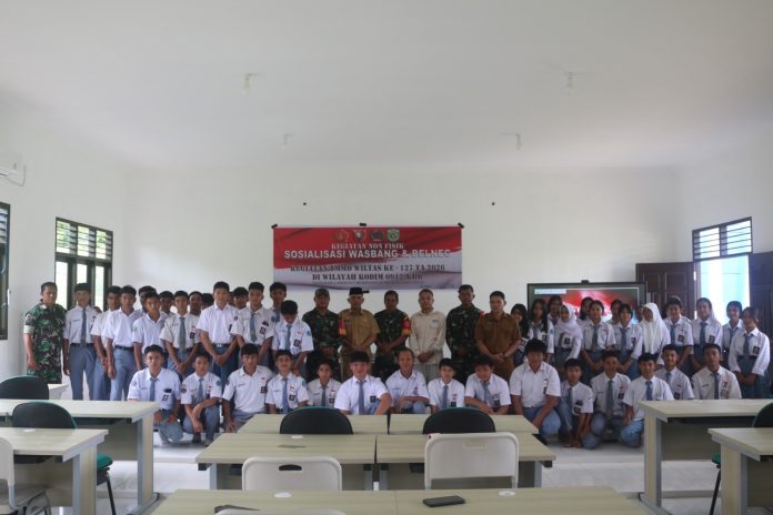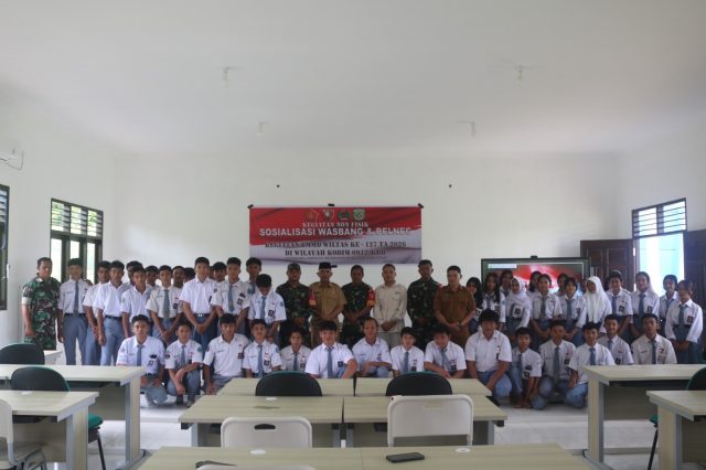 SENDAWAR — Satgas TMMD Wiltas Ke-127 Kodim 0912 Kutai Barat menggelar Sosialisasi Wawasan Kebangsaan (Wasbang) dan Bela Negara di SMK Negeri 1 Linggang Bigung, Kecamatan Linggang Bigung, Selasa (24/2/2026).